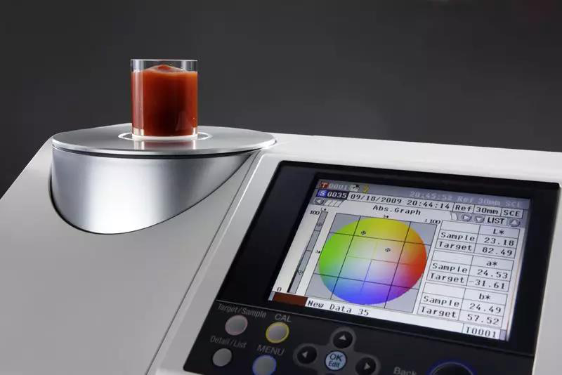 为了确保产品的色泽在货架期内符合标准,商家会设定常温储藏条件下的色泽标准。使用分光测色计CM-5,在D65光源下对样品进行测量获得准确的L、a、b值,通过与标准数据对比,即可知晓样品是否符合标准。